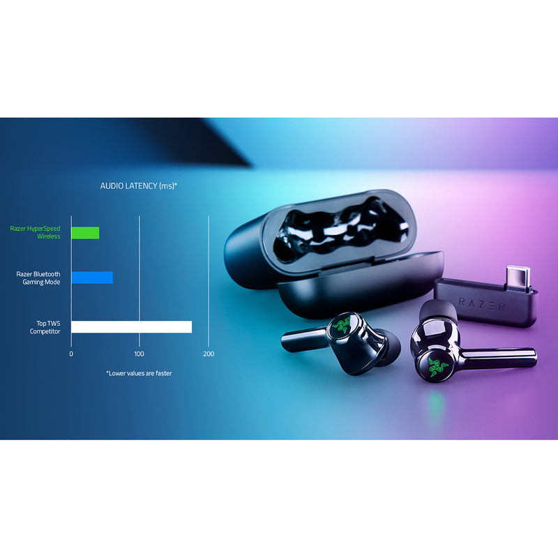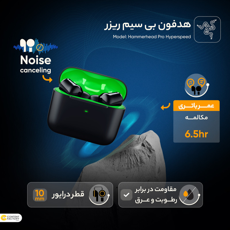 Razer Hammerhead Pro HyperSpeed، یک هدفون بلوتوث بیسیم برای بازیهای رایانهای است که توسط شرکت Razer تولید معرفی شده است. این هدفون از فناوری بیسیم HyperSpeed Razer استفاده میکند که یک فناوری بیسیم قدرتمند است که تاخیر را به حداقل میرساند و پاسخدهی سریع را برای تجربه بازی بهتر ارائه میدهد. این مجصول ریزر از درایورهای 10 میلیمتری استفاده میکند و صدایی دقیق و بینقص با گستره فرکانسی 20Hz تا 20kHz ارائه میدهد. در کنار درایورهای قدرتمند در این محصول شاهد میکروفن داخلی که امکان مکالمه و گیمینگ چند نفره را هم فراهم میکند. از قابلیتهای این هدفون میتوان به Hammerhead Pro HyperSpeed و گواهینامه IPX4 اشتاره کرد. همچنین، این هدفون با اکثر دستگاههای بلوتوثی سازگار است و دارای کابل USB-C برای شارژ است. هدفون بیسیم Razer Hammerhead Pro HyperSpeed، گواهی THX را دریافت کرده است که کیفیت بازتولید صدای بالا را تضمین میکند. این هدفونهای واقعی بیسیم، ارتباط بیدرنگی را در سراسر پلتفرمهای مختلف فراهم میکنند. از رایانههای شخصی و پلیاستیشنx تا گوشیهای هوشمند و دستگاههای قابل حمل مانند نینتندو سوئیچ یا استیم دِک، میتوانید با استفاده از دانگل بیسیم HyperSpeed (USB-A/USB-C) یا Bluetooth 5.3، هدفون را متصل کنید. هدفونهای بیسیم Razer Hammerhead Pro HyperSpeed ارائه دهنده یک تجربه صوتی قدرتمند در تمامی پلتفرمهای مورد علاقه شما هستند. از رایانههای شخصی و پلیاستیشنx تا گوشیهای هوشمند و دستگاههای قابل حمل مانند نینتندو سوئیچ یا استیم دِک، میتوانید هدفون را از طریق دانگل بیسیم HyperSpeed (USB-A/USB-C) یا Bluetooth 5.3 متصل کنید.