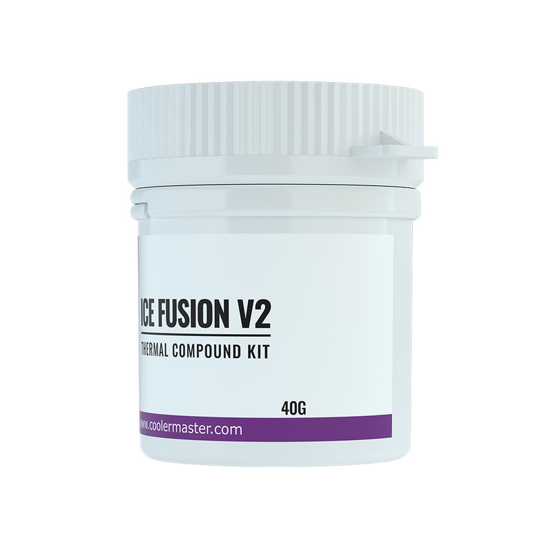 خمیر رسانای گرما یا خمیر سیلیکون مادهای است که بین پردازنده و کارت گرافیک با خنککنندهها قرار میگیرد و رابط انتقال حرارت این پردازشگرها به خنککننده میشوند تا دمای تولیدی به هیتسینک رسیده و گرمای رایانه کنترل شود، استفاده از خمیر رسانای گرمای باکیفیت تاثیری شگرف در عملکرد خنککنندههای سیستم دارد و در این میان تولیدات «کولرمستر» (Cooler Master) از آوازهای خوب برخوردار هستند؛ خمیر رسانای گرما کولرمستر مدل ICE FUSION V2 یکی از همین ساختهها میباشد. ICE FUSION V2 بهشکل کاسهای عرضه میشود تا بتوان از آن به دفعات بیشتری استفاده کرد چرا که این خمیر رسانای گرما علاوهبر پردازنده و کارت گرافیک برای استفاده در قطعات بیشتری چون رمها، منبع تغذیه و حتی درایوهای نوری در نظر گرفته شده است تا خیال کاربر را از مدیریت دمای سیستم آسوده نماید؛ ظرف دو لایهی این خمیر رسانا نیز بهشکلی ساخته شده که جلوی خشک شدن آن پس از استفاده اولیه را میگیرد و میتوان برای مدت زمانی طولانی بر روی آن حساب باز کرد. استفاده از مواد باکیفیت که به محیطزیست نیز صدمهای نمیزنند این تضمین را میدهد که ترکیب بهکار رفته در خمیر، رسانایی خوب برای گرمای دریافتی از قطعات باشد و انتقال گرما در آن بهشکل چشمگیری بالا رود؛ فرمول پیشرفته این خمیر امکان اعمال آسان و پاک کردن آن بدون آسیب رساندن به تراشه یا خنککننده را به شما میدهد. خمیر ICE FUSION V2 دارای رسانش گرمایی بالا میباشد که ۵ W/M.K اندازهگیری شده است، حجم این خمیر نیز ۴۰ گرم با گرانروی ۲.۶ است؛ گفتنی است همراه با این خمیر خاکستری رنگ یک کاردک مخصوص اعمال کردن آن بر روی سطوح مورد نیاز نیز ارائه میشود.