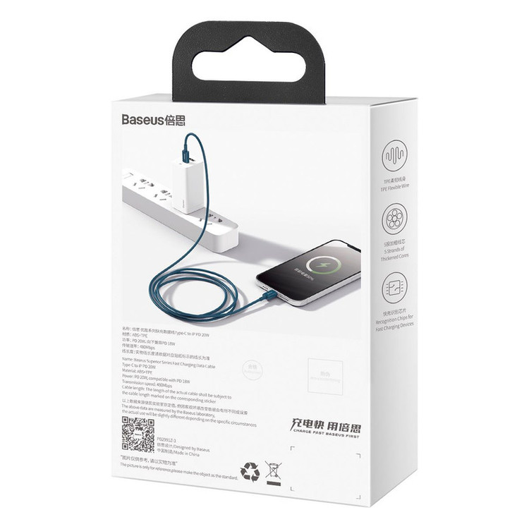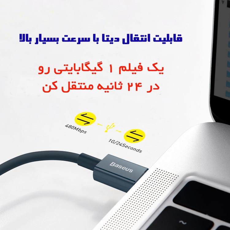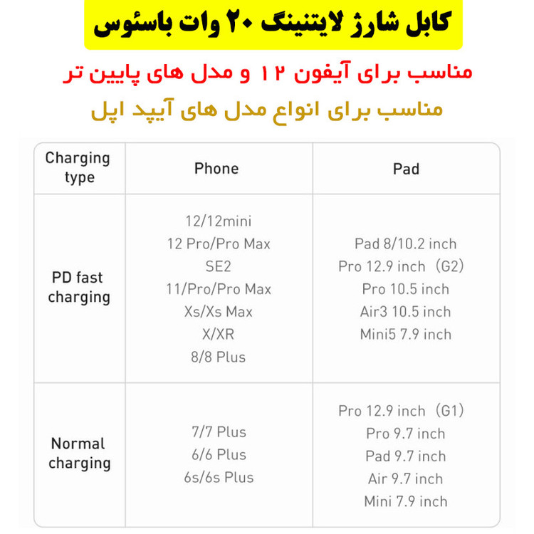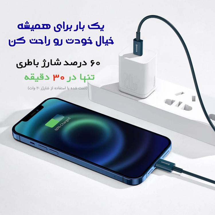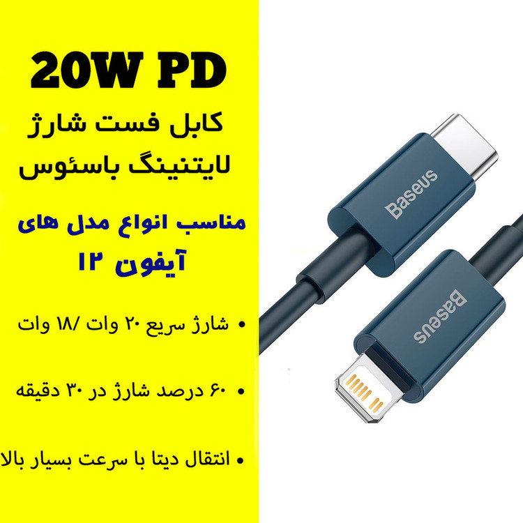 کابل تبدیل USB-C به لایتنینگ باسئوس مدل 20W طول 2 متر