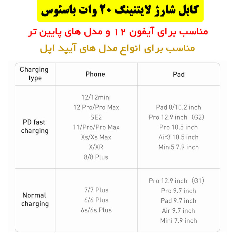 سایر توضیحات کابل : توان شارژ ۲۰ وات
