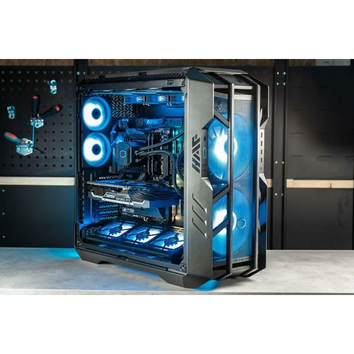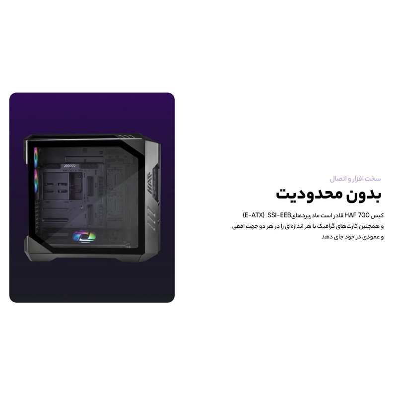 کیس Cooler Master HAF 700 یکی از پرچمداران واقعی در کلاس Full Tower است؛ محصولی که با تمرکز بر عملکرد جریان هوا (High Air Flow) و ارائه امکانات سطح بالا برای سیستمهای گیمینگ و ورکاستیشن حرفهای طراحی شده است. بدنهای از فلز مقاوم با پنل کناری شیشهای، ظاهر مدرن و صنعتی این کیس را برجسته میسازد و در عین حال امکان نمایش قطعات داخلی و نورپردازی ARGB را فراهم میکند.