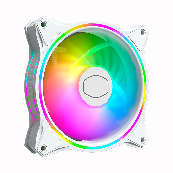 سه عدد فن MASTERFAN MF120 HALO WHITE EDITION در بستهبندی کالا قرار دارد.