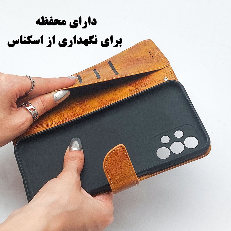 کیف چرمی کلاسوری ، قاب شیک و زیبایی است که از جنس چرم مصنوعی مرغوب ساخته شده است. این قاب با پوشش کامل پشت، نمایشگر و دور تا دور گوشی به خوبی از آن در برابر آسیب هایی مانند خراشیدگی، ضربات احتمالی و گرد و غبار محافظت می کند. ارتفاع میان قاب و لنز دوربین پشت گوشی باعث می شود تا هنگامی که گوشی را روی میز یا سطح صاف قرار می دهید لنز آن دچار خراشیدگی نشود. با استفاده از مگنت آهنربایی قوی در موقع بستن، کیف کاملا کیپ و محکم قرار می گیرد. قاب داخلی کیف، جنسی نرم و منعطف دارد که باعث می شود تا گوشی به راحتی درون آن قرار بگیرد. درون کیف کلاسوری فضایی برای نگهداری از کارتها و اسکناس طراحی شده است. همچنین این محصول قابلیت اتصال بند، هم به قاب موبایل و هم به کیف کلاسوری را دارد.