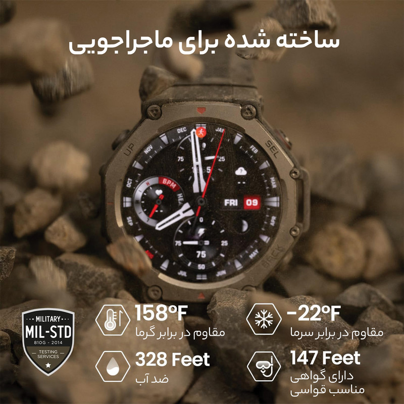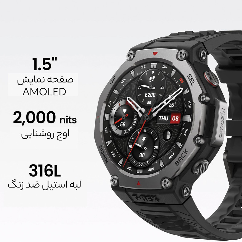 قابلیتهای ساعت هوشمند: صفحه نمایش لمسی , قابلیت مکالمه از طریق بلوتوث , پشتیبانی از زبان فارسی در منو و سیستمعامل , قابلیت تغییر طرح ساعت یا تم