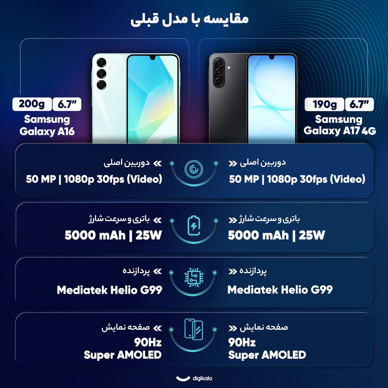 در مجموع، سامسونگ Galaxy A17 گزینهای اقتصادی و کارآمد است که برای کاربرانی که به دنبال گوشی خوشقیمت، باتری پرقدرت و نمایشگر باکیفیت هستند، انتخابی ارزشمند محسوب میشود.