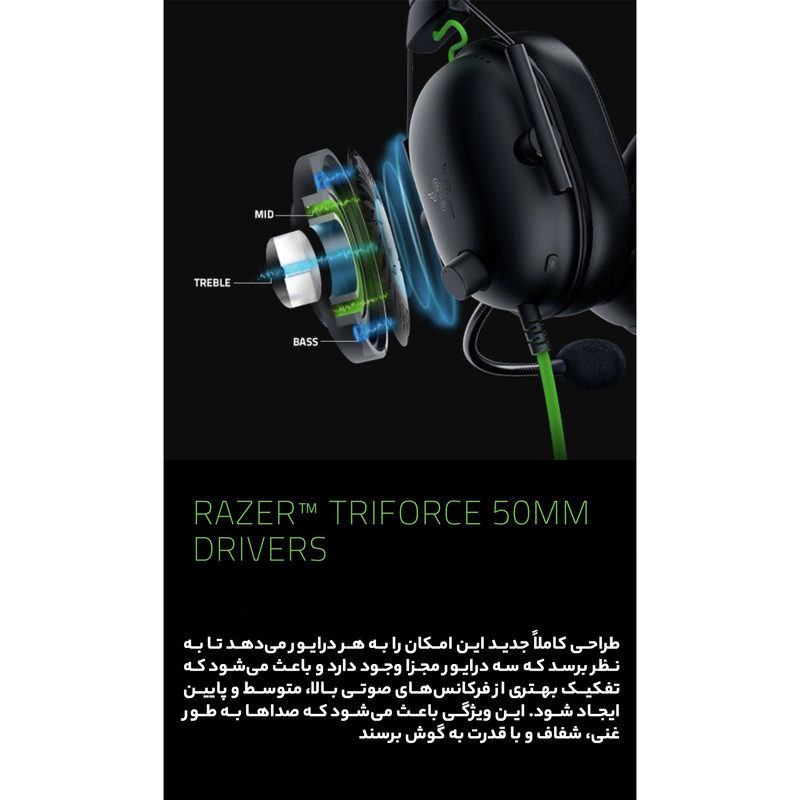 جدیدترین هدست گیمینگ ریزر در سال 2020 مدل BlackShark V2 X برای طرفداران برند محبوب ریزر ارائه شده است. این محصول با طراحی خاص ریزر و با کیفیت فوق العاده از صدای فراگیر 7.1 پشتیبانی میکند. هدست بلک شارک بسیار سبک بوده و با حدود 240 گرم وزن ، در استفاده طولانی مدت ایجاد خستگی نمی کند. ریزر یک پیچ آنالوگ تنظیم حجم صدا نیز در این محصول تعبیه کرده است که به راحتی میتوان از آن استفاده کرد. طراحی و ساخت قسمت گوشی به همراه متریال چرمی هوشمند ، هم از نویز محیط به خوبی جلوگیری میکند و هم وضعیت راحتی با گردش هوا برای گوشها بوجود می آورد. طراحی زیبای کابل 3.5 میلیمتری به رنگ سبز خاص ریزر ، صدای 360 درجه ، استفاده از متریال دارای حافظه برای راحتی سر و گوش ها ، درایور بسیار بزرگ 50 میلی متری تیتانیومی ، هسته فلزی برای هدبند ، نویز کنسلینگ میکروفون ،... از امکانات بی نظیر این هدست ارزشمند می باشد.