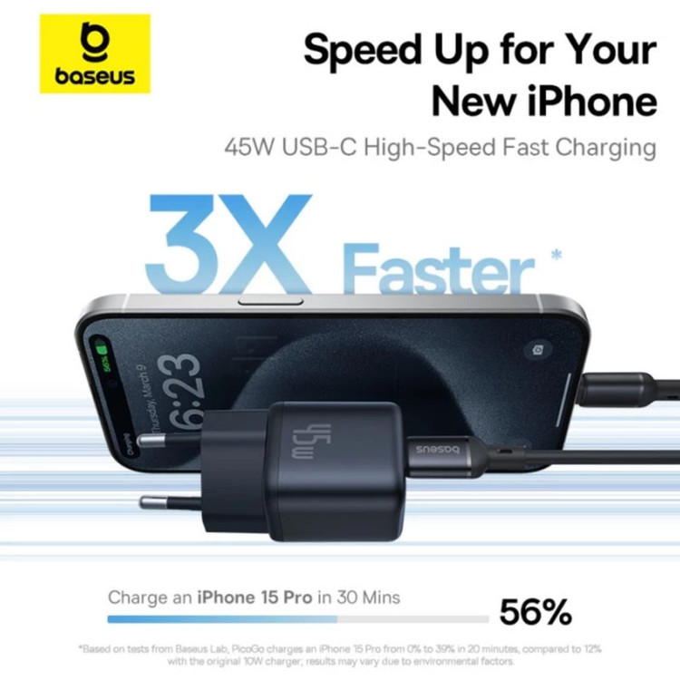 این شارژر سریع 45 واتی USB-C زمان شارژ آیفون های جدید شما را تسریع می بخشد و 56 درصد برای آیفون 16 پرو و 61 درصد برای گلکسی اس 24 را در 30 دقیقه شارژ می کند. لطفاً به یاد داشته باشید، اگر میخواهید Super Fast Charge 2.0 را بخواهید، باید از یک کابل شارژ 5A استفاده کنید.