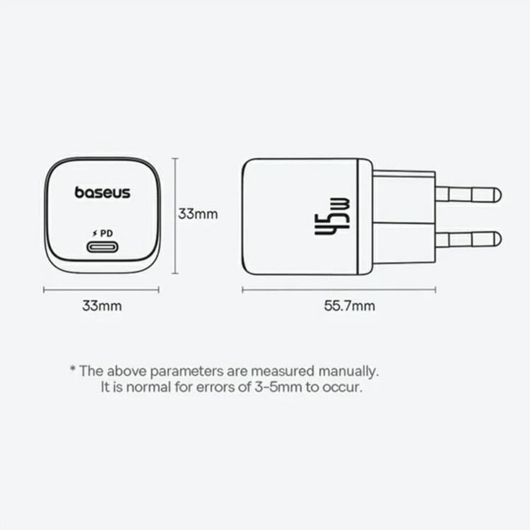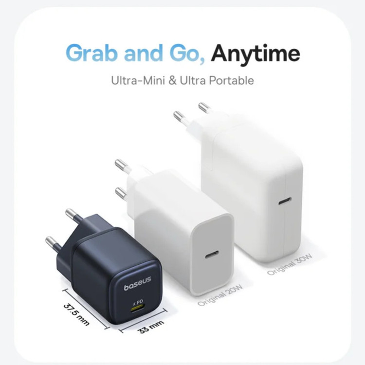 مینی و فشرده: شارژر سریع 45 واتی Baseus PicoGo 54 درصد کوچکتر از شارژر 30 واتی اصلی است. اندازه جمع و جور آن وزن اضافی برای حمل، وصل کردن و جدا کردن آن اضافه نمی کند—ایده آل برای شارژ در حال حرکت در هر مکانی. توجه: دوشاخه قابل باز شدن است.