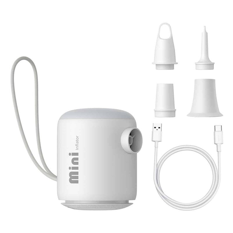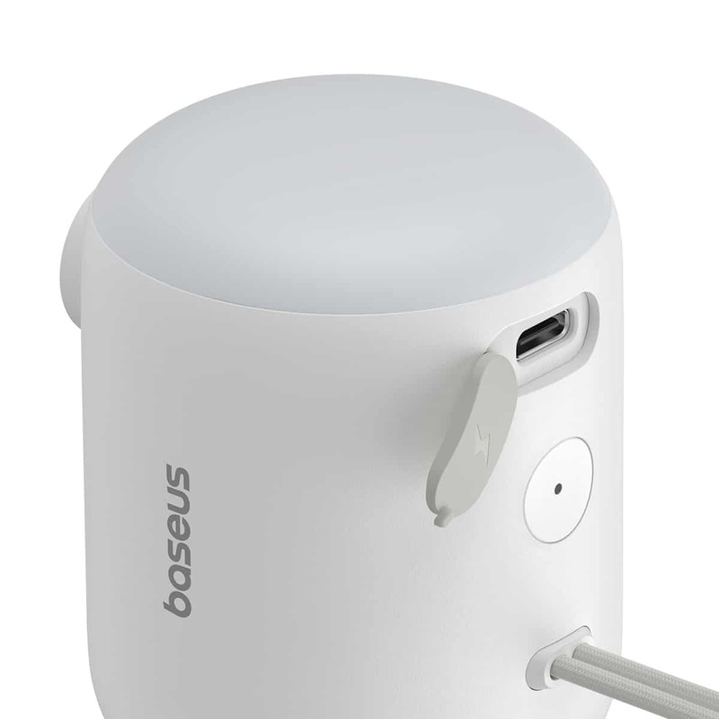 پمپ باد شارژی بیسوس مدل CG017 یکی از محصولات جدید کمپانی بیسوس است که از آن می توان برای باد کردن تشک بادی ، تخت بادی، قایق بادی شنا نیز استفاده کرد.پمپ باد Baseus CG017 اندازه کوچکی که دارد به راحتی می توانید آن را با خود در همه جا حمل کنید. قاب بیرونی این کمپرسور از ABS+PC ساخته شده که مقاومت خوبی در برابر ضربه دارد. ابعاد این پمپ باد برابر 71x55 میلیمتر است و وزنی در حدود 130 گرم دارد.همچنین در قسمت زیرین این پمپ باد یک چراغ LED با سه حالت تغییر نور(کم ، زیاد و چشمک زن ) تعبیه شده است. شلنگ خروجی هوا در قسمت بالایی پمپ باد و کلیدهای تنظیم روی بدنه واقع شده. همچنین دریچه های خروج و ورود هوا که روی لبه های دستگاه کار شده با عبور جریان هوا حین عملکرد دستگاه باعث بالا رفتن عملکرد دستگاه شده است.