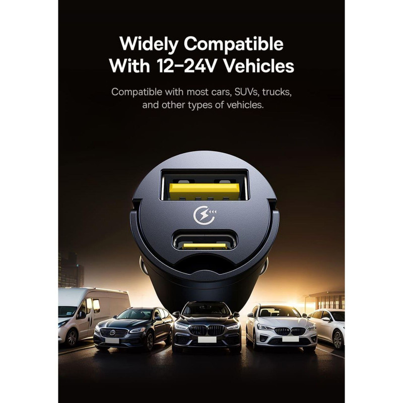 شارژر فندکی Baseus دارای دو پورت خروجی است که شامل یک پورت USB و یک پورت تایپ سی میباشد. این ویژگی به شما این امکان را میدهد که دو دستگاه مختلف را به طور همزمان شارژ کنید. برای مثال، شما میتوانید گوشی هوشمند خود را از طریق پورت USB و دستگاههای دیگر مانند تبلت یا دوربین ورزشی را از طریق پورت تایپ سی شارژ کنید. این قابلیت به ویژه در مواقعی که چندین دستگاه به شارژ نیاز دارند، بسیار کارآمد و مفید است.وجود دو پورت به شما این امکان را میدهد که نیازی به استفاده از چندین شارژر نداشته باشید و با استفاده از این شارژر کوچک و جمعوجور، چندین دستگاه را به صورت همزمان شارژ کنید.