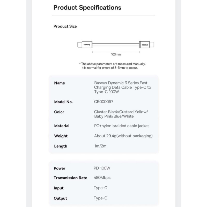 کابل تبدیل type-c به type-c بیسوس مدل Dynamic 3 series 100w دارای قابلیتهای مختلفی ازجمله پشتیبانی از تکنولوژی Power Delivery ،Quick Charge، سرعت بالا در انتقال اطلاعات، طول مناسب یک متری و پشتیبانی از تمام دستگاههای دارای پورت تایپ c است. این کابل در کنار مقاومت بالا نسبت به شکستگی، کشش و یا پارگی در طول سیم، از انعطاف پذیری زیادی نیز برخوردار است. کانکتور ها نیز از جنس آلومینیوم بوده و دوام بالایی دارند.