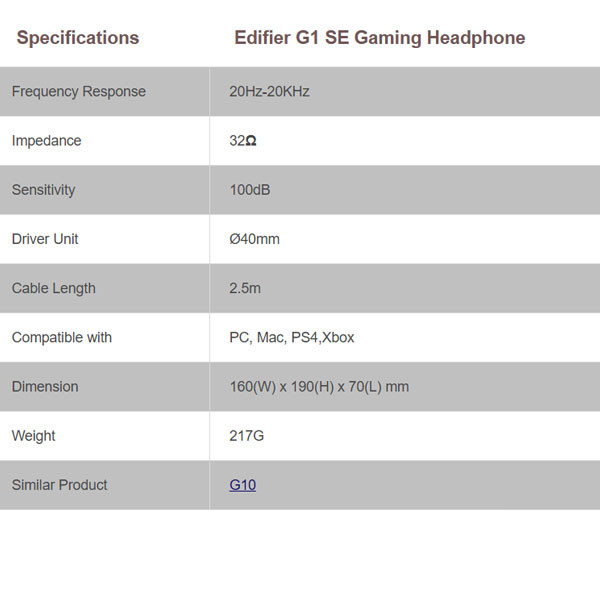 برند «EDIFIER» یکی از نامهای معروف در زمینهی ساخت محصولات صوتی است . ساختههای این شرکت محصولاتی با کیفیت بالا و قیمت مقرون به صرفهاند که میتوانند تا سالها نیاز کاربر خود را برطرف کنند. مدل «G1 SE» یک هدست قدرتمند با یونیتهای 40 میلیمتری است که صدا را به طریقهی دیجیتال پروسس کرده و با کیفیتی خوب به گوش کاربر میرساند . طراحی مدرن و ارگونومیک این هدفون علاوه بر زیبایی ظاهری ، با کمک ابرهای لطیف بهکار رفته برای پوشش گوشیها ، به راحتی روی سر و گوشهای کاربر قرار گرفته و میتواند ساعتها بدون خستگی مورد استفاده قرار گیرد. میکروفون حساس و قوی این هدست که روی یونیت گوش چپ تعبیه شده هم از این طراحی مدرن بهره برده و به نرمی روی مفصل خود حرکت میکند. روی سیم این هدست و در مسیر گوشیها و میکروفون به منبع پخش صدا ، یک کنترل کنندهی خوشدست و کارآمد تعبیه شده که کاربر را در کنترل صدا ، قطع و وصل میکروفون و استفاده از چندین افکت صوتی کمک میکند . امپدانس 32 اهمی این هدست در کنار قدرت 100 دسیبلی از این هدست EDIFIER محصولی مناسب برای بازیهای ویدیویی و شنیدن موسیقی ساخته است. فیش رابط این محصول از نوع 3.5میلیمتری است که قابلیت اتصال به اکثر پخشکنندههای صوتی را دارد. از دیگر مزایای این هدست میتوان به وزن 217 گرمی و طول 2.5 متری کابل آن اشاره کرد.